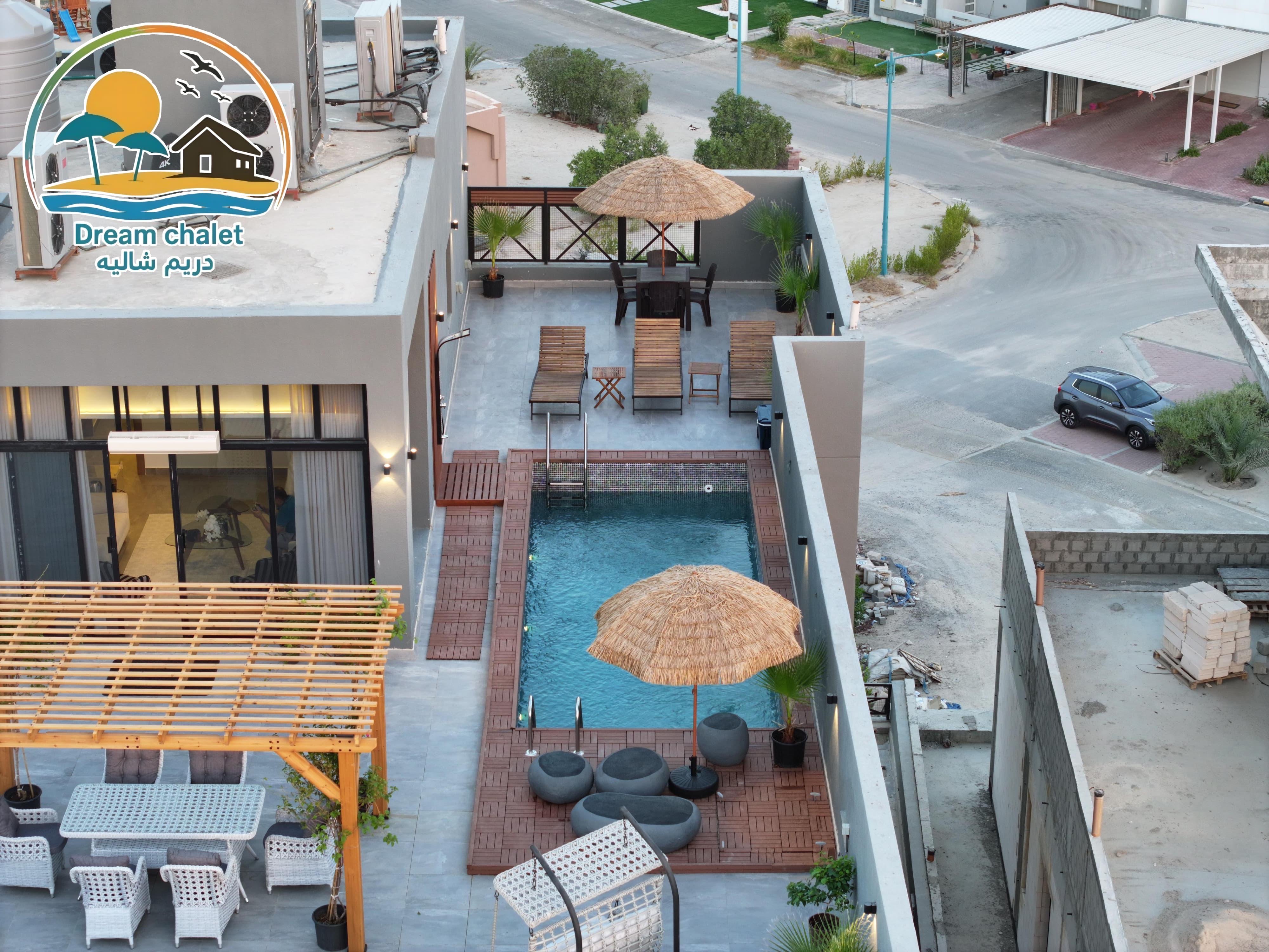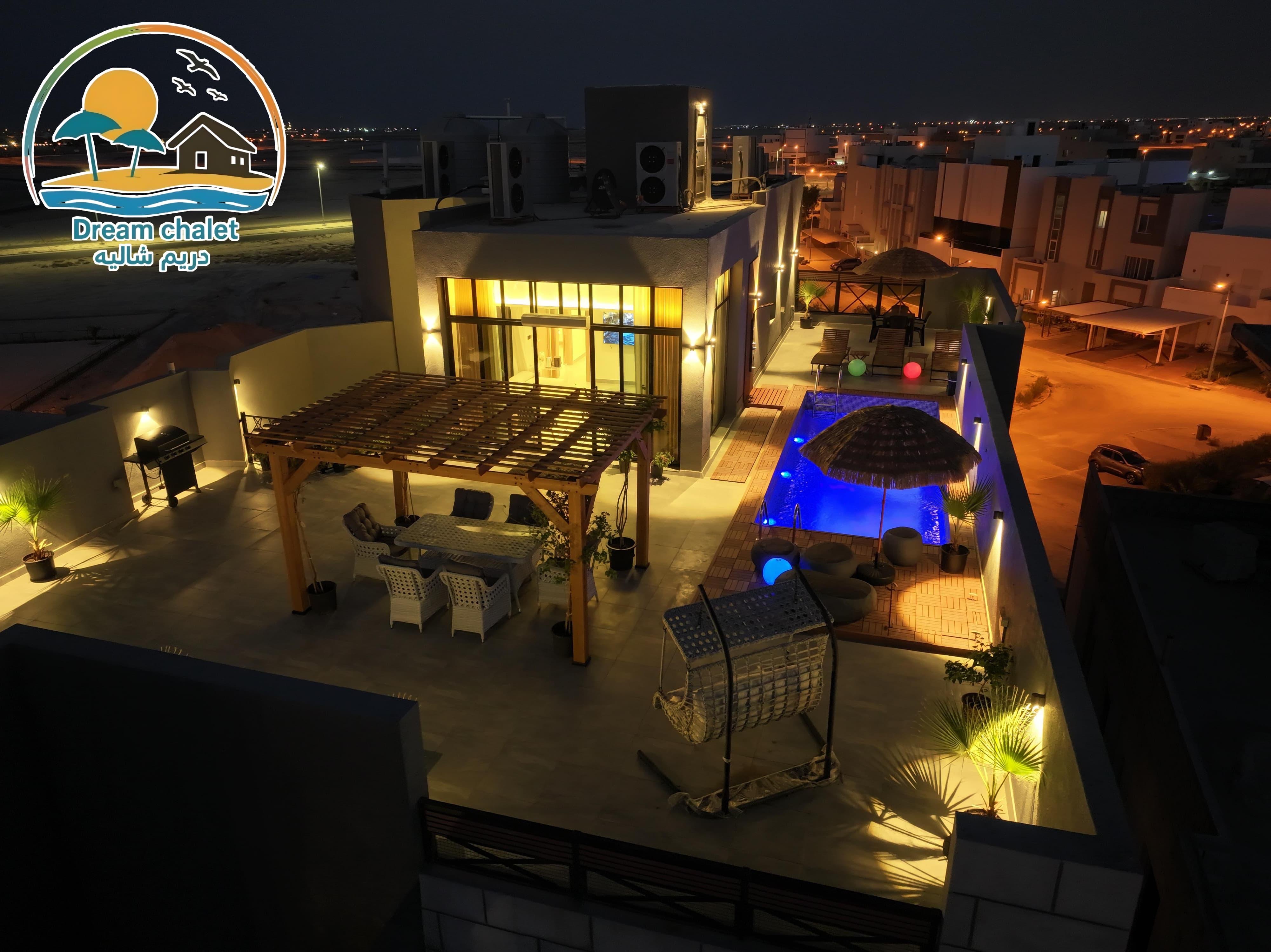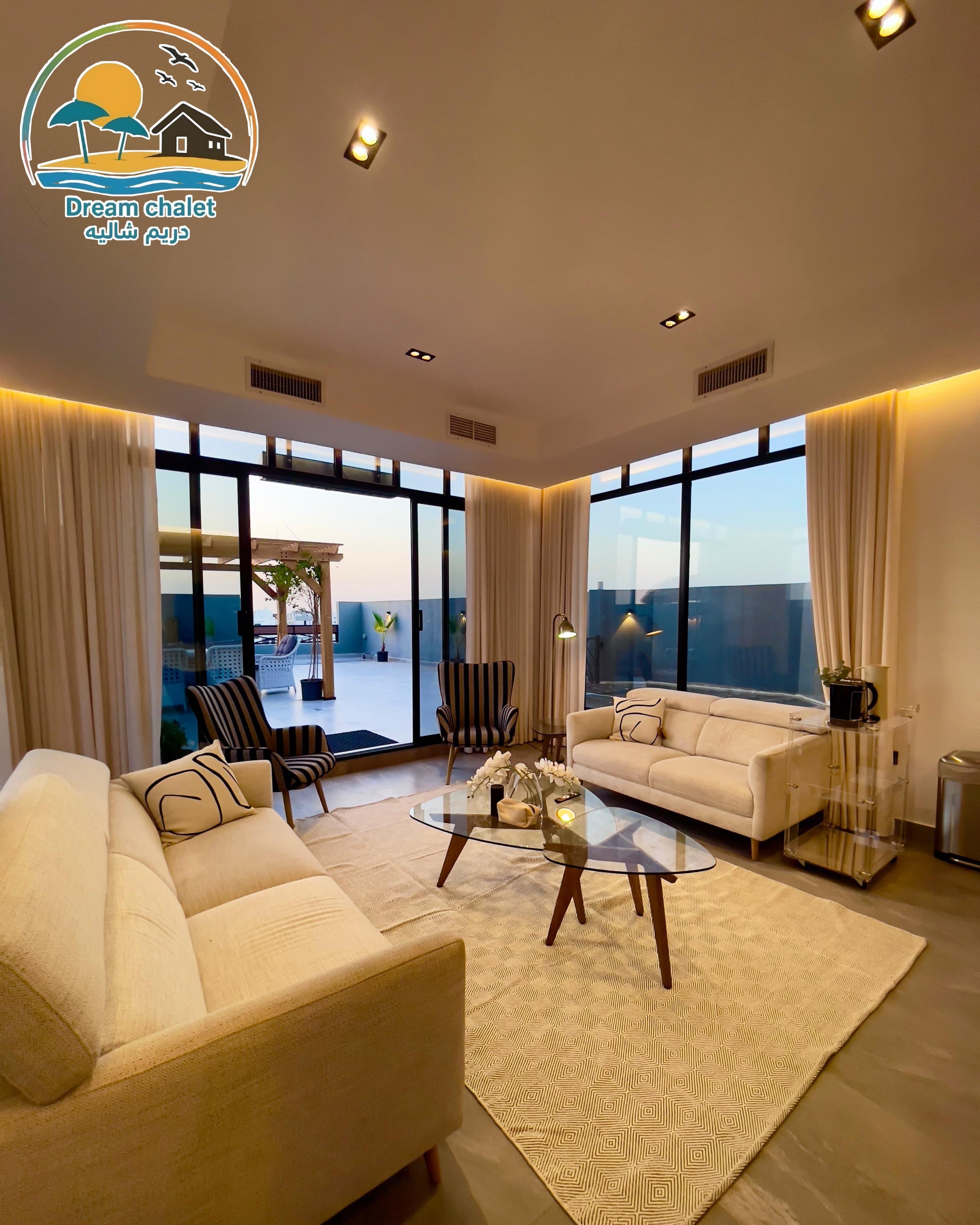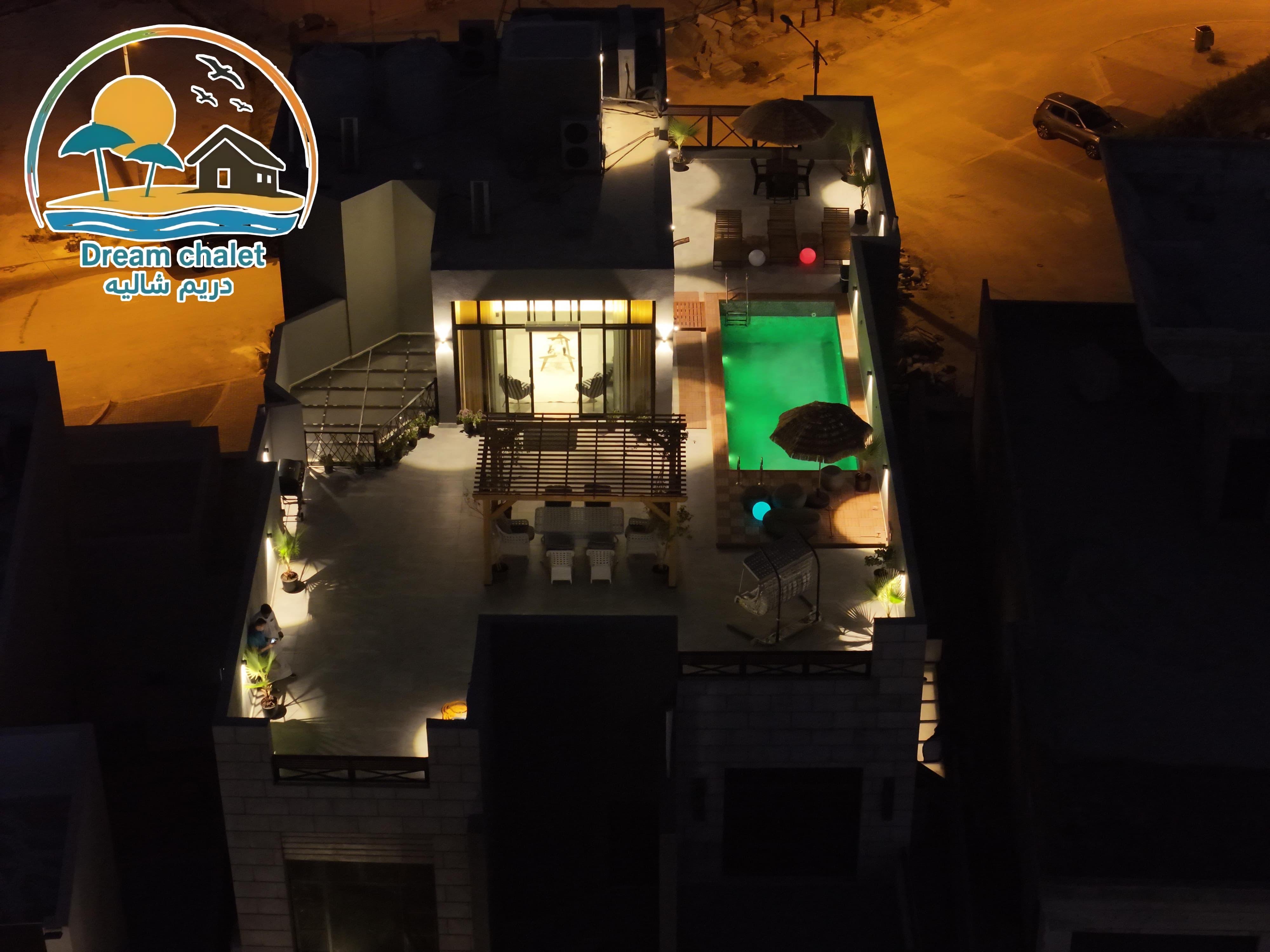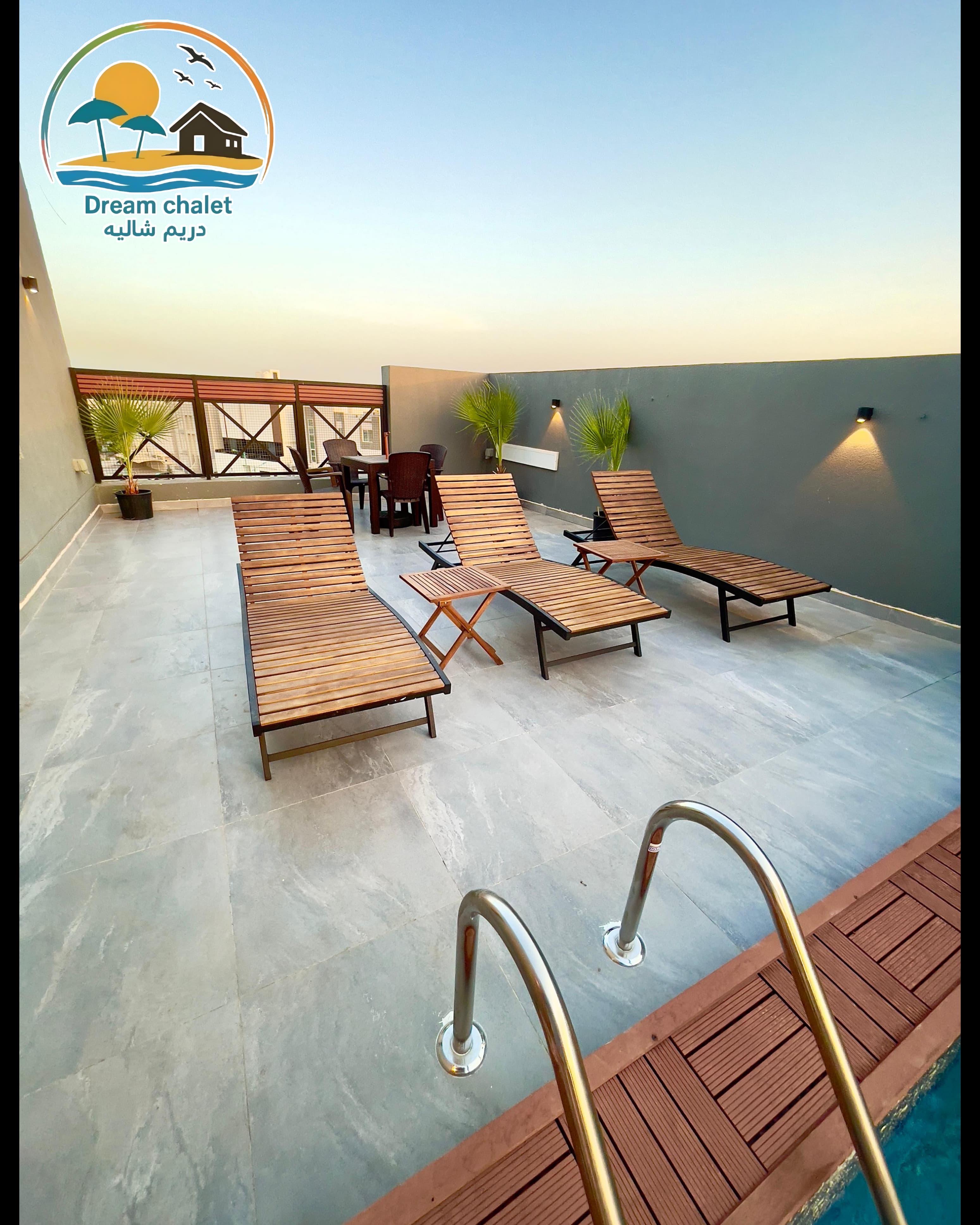 الشاليه عباره عن غرفة ماستر وصاله وحمام سباحه وجلسات خارجيه
